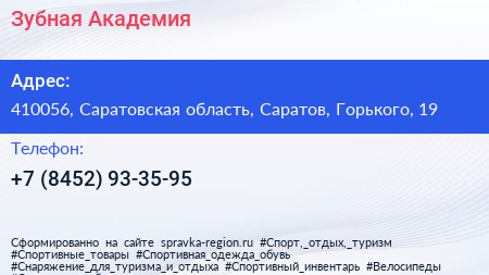 Зубная Академия по адресу 410056, Саратовская область, Саратов, Горького, 19 в дальнейшем Организация, размещена в следующих категориях: