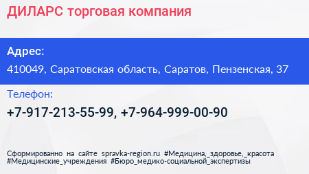 ДИЛАРС, торговая компания по адресу 410049, Саратовская область, Саратов, Пензенская, 37 в дальнейшем Организация, размещена в следующих категориях: