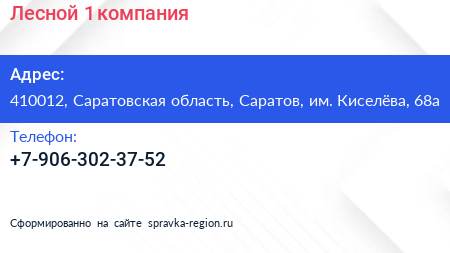 Лесной-1, компания по адресу 410012, Саратовская область, Саратов, им. Киселёва, 68а в дальнейшем Организация, размещена в следующих категориях:
