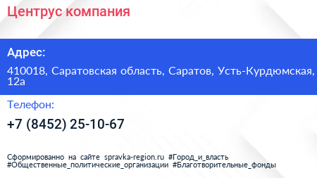 Центрус, компания по адресу 410018, Саратовская область, Саратов, Усть-Курдюмская, 12а в дальнейшем Организация, размещена в следующих категориях:
