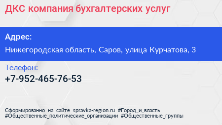 ДКС, компания бухгалтерских услуг по адресу Нижегородская область, Саров, улица Курчатова, 3 в дальнейшем Организация, размещена в следующих категориях: