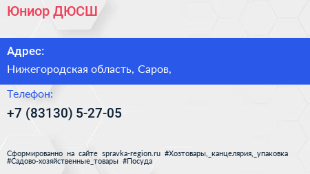 Юниор, ДЮСШ по адресу Нижегородская область, Саров, в дальнейшем Организация, размещена в следующих категориях: