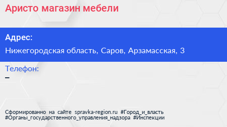 Аристо, магазин мебели по адресу Нижегородская область, Саров, Арзамасская, 3 в дальнейшем Организация, размещена в следующих категориях:
