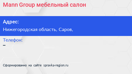 Mann Group, мебельный салон по адресу Нижегородская область, Саров, в дальнейшем Организация, размещена в следующих категориях: