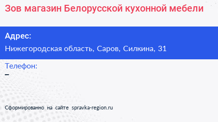 Зов, магазин Белорусской кухонной мебели по адресу Нижегородская область, Саров, Силкина, 31 в дальнейшем Организация, размещена в следующих категориях:
