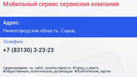 Мобильный сервис, сервисная компания по адресу Нижегородская область, Саров, в дальнейшем Организация, размещена в следующих категориях: