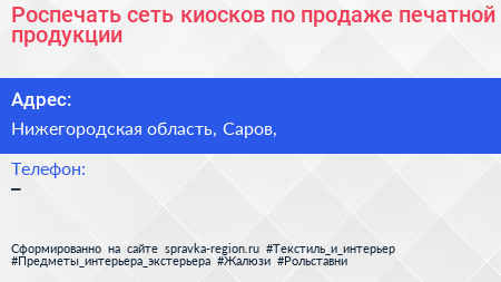 Роспечать, сеть киосков по продаже печатной продукции по адресу Нижегородская область, Саров, в дальнейшем Организация, размещена в следующих категориях: