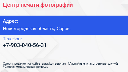 Центр печати фотографий по адресу Нижегородская область, Саров, в дальнейшем Организация, размещена в следующих категориях: