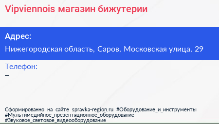 Vipviennois, магазин бижутерии по адресу Нижегородская область, Саров, Московская улица, 29 в дальнейшем Организация, размещена в следующих категориях: