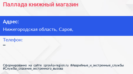 Паллада, книжный магазин по адресу Нижегородская область, Саров, в дальнейшем Организация, размещена в следующих категориях: