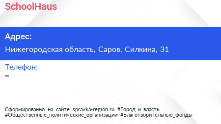 SchoolHaus по адресу Нижегородская область, Саров, Силкина, 31 в дальнейшем Организация, размещена в следующих категориях: