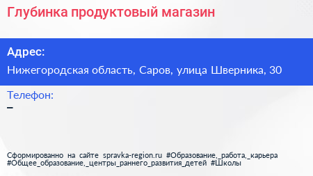 Глубинка, продуктовый магазин по адресу Нижегородская область, Саров, улица Шверника, 30 в дальнейшем Организация, размещена в следующих категориях: