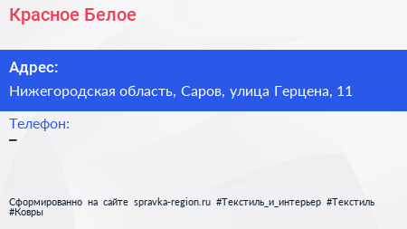 Красное & Белое по адресу Нижегородская область, Саров, улица Герцена, 11 в дальнейшем Организация, размещена в следующих категориях: