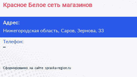 Красное & Белое, сеть магазинов по адресу Нижегородская область, Саров, Зернова, 33 в дальнейшем Организация, размещена в следующих категориях: