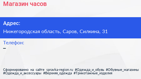 Магазин часов по адресу Нижегородская область, Саров, Силкина, 31 в дальнейшем Организация, размещена в следующих категориях: