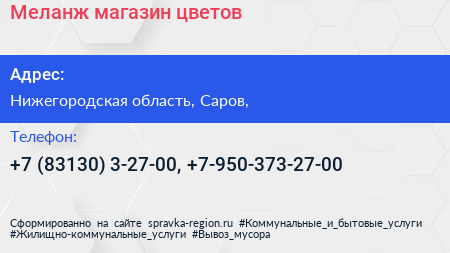 Меланж, магазин цветов по адресу Нижегородская область, Саров, в дальнейшем Организация, размещена в следующих категориях: