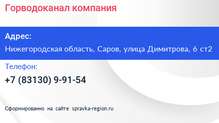 Горводоканал, компания по адресу Нижегородская область, Саров, улица Димитрова, 6 ст2 в дальнейшем Организация, размещена в следующих категориях: