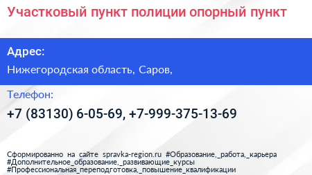 Участковый пункт полиции, опорный пункт по адресу Нижегородская область, Саров, в дальнейшем Организация, размещена в следующих категориях: