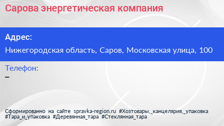 Сарова, энергетическая компания по адресу Нижегородская область, Саров, Московская улица, 100 в дальнейшем Организация, размещена в следующих категориях: