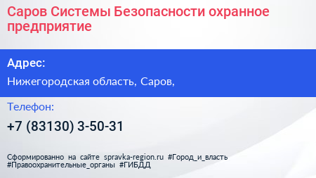 Саров-Системы Безопасности, охранное предприятие по адресу Нижегородская область, Саров, в дальнейшем Организация, размещена в следующих категориях: