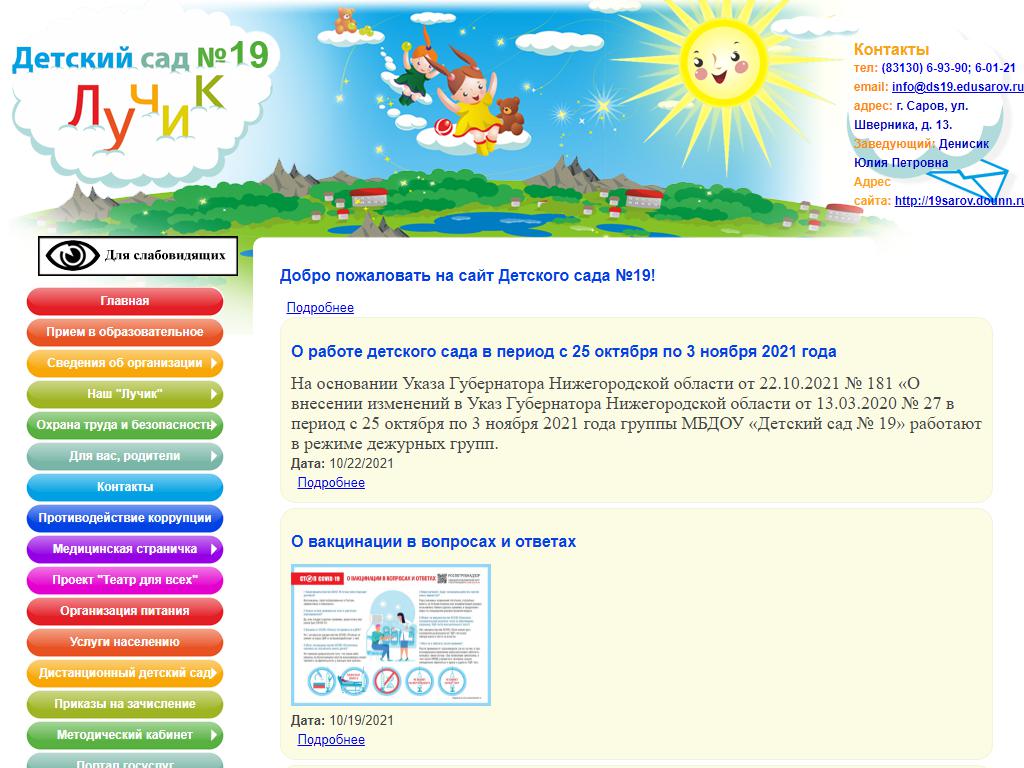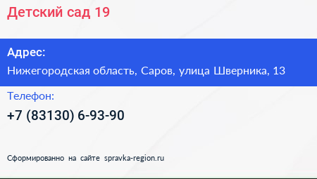 Детский сад №19 по адресу Нижегородская область, Саров, улица Шверника, 13 в дальнейшем Организация, размещена в следующих категориях: