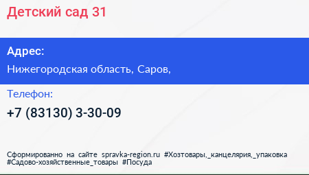 Детский сад №31 по адресу Нижегородская область, Саров, в дальнейшем Организация, размещена в следующих категориях: