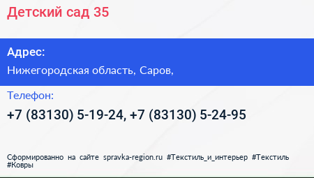 Детский сад №35 по адресу Нижегородская область, Саров, в дальнейшем Организация, размещена в следующих категориях: