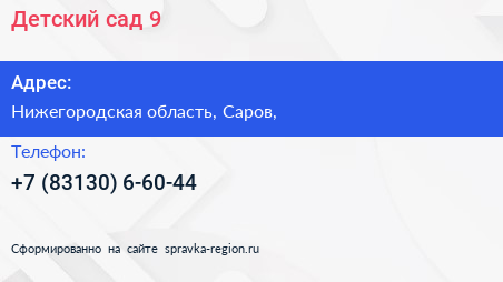 Детский сад №9 по адресу Нижегородская область, Саров, в дальнейшем Организация, размещена в следующих категориях: