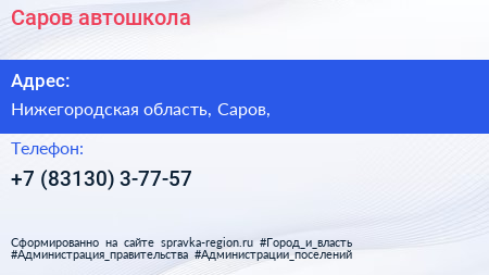 Саров, автошкола по адресу Нижегородская область, Саров, в дальнейшем Организация, размещена в следующих категориях: