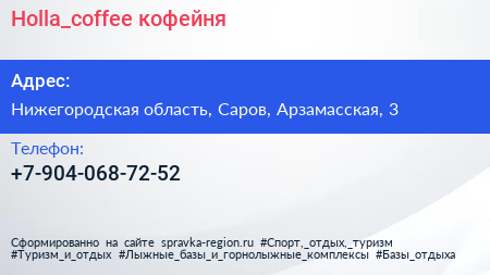 Holla_coffee, кофейня по адресу Нижегородская область, Саров, Арзамасская, 3 в дальнейшем Организация, размещена в следующих категориях: