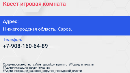 Квест, игровая комната по адресу Нижегородская область, Саров, в дальнейшем Организация, размещена в следующих категориях: