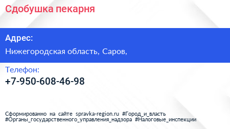 Сдобушка, пекарня по адресу Нижегородская область, Саров, в дальнейшем Организация, размещена в следующих категориях: