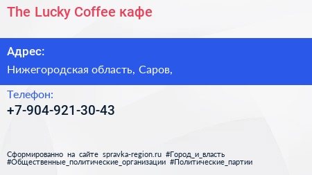 The Lucky Coffee, кафе по адресу Нижегородская область, Саров, в дальнейшем Организация, размещена в следующих категориях: