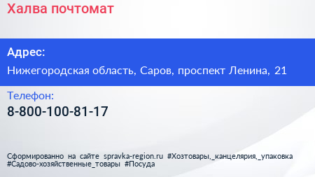 Халва, почтомат по адресу Нижегородская область, Саров, проспект Ленина, 21 в дальнейшем Организация, размещена в следующих категориях: