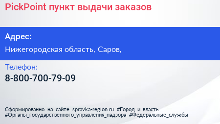 PickPoint, пункт выдачи заказов по адресу Нижегородская область, Саров, в дальнейшем Организация, размещена в следующих категориях: