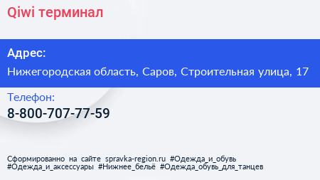 Qiwi, терминал по адресу Нижегородская область, Саров, Строительная улица, 17 в дальнейшем Организация, размещена в следующих категориях: