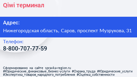 Qiwi, терминал по адресу Нижегородская область, Саров, проспект Музрукова, 31 в дальнейшем Организация, размещена в следующих категориях: