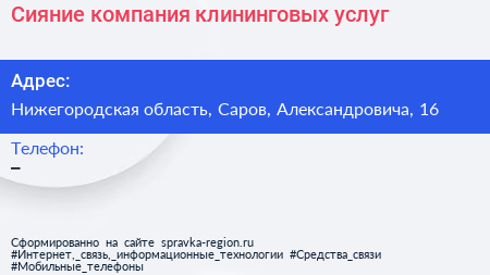 Сияние, компания клининговых услуг по адресу Нижегородская область, Саров, Александровича, 16 в дальнейшем Организация, размещена в следующих категориях:
