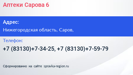 Аптеки Сарова №6 по адресу Нижегородская область, Саров, в дальнейшем Организация, размещена в следующих категориях:
