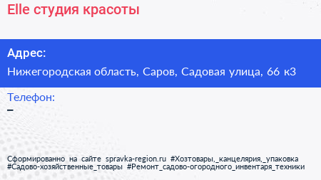 Elle, студия красоты по адресу Нижегородская область, Саров, Садовая улица, 66 к3 в дальнейшем Организация, размещена в следующих категориях: