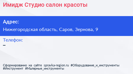 Имидж Студио, салон красоты по адресу Нижегородская область, Саров, Зернова, 9 в дальнейшем Организация, размещена в следующих категориях: