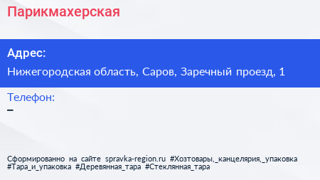Парикмахерская по адресу Нижегородская область, Саров, Заречный проезд, 1 в дальнейшем Организация, размещена в следующих категориях: