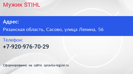 Мужик STIHL по адресу Рязанская область, Сасово, улица Ленина, 56 в дальнейшем Организация, размещена в следующих категориях: