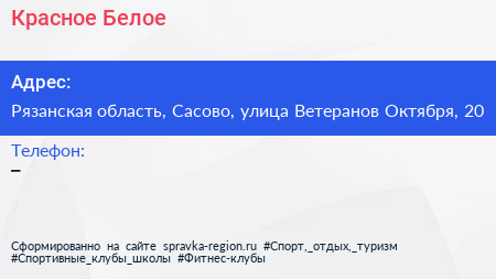 Красное & Белое по адресу Рязанская область, Сасово, улица Ветеранов Октября, 20 в дальнейшем Организация, размещена в следующих категориях: