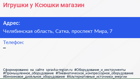 Игрушки у Ксюшки, магазин по адресу Челябинская область, Сатка, проспект Мира, 7 в дальнейшем Организация, размещена в следующих категориях: