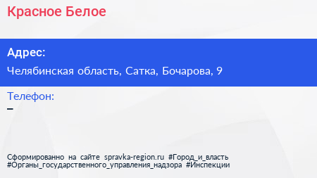 Красное & Белое по адресу Челябинская область, Сатка, Бочарова, 9 в дальнейшем Организация, размещена в следующих категориях: