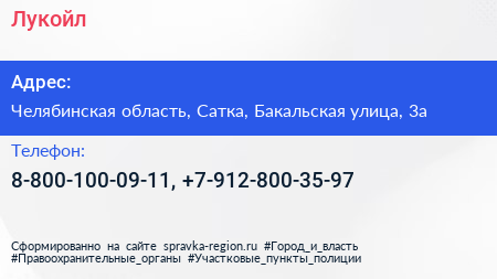Лукойл по адресу Челябинская область, Сатка, Бакальская улица, 3а в дальнейшем Организация, размещена в следующих категориях: