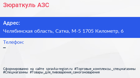 Адрес: Челябинская область, Сатка, М-5 1705 Километр, 2/1