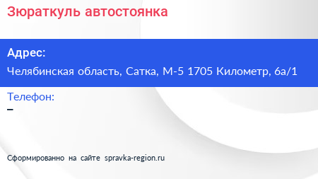 Адрес: Челябинская область, Сатка, М-5 1705 Километр, 2/1