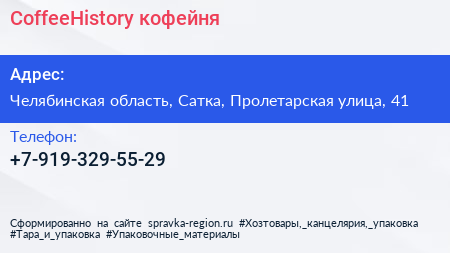 CoffeeHistory, кофейня по адресу Челябинская область, Сатка, Пролетарская улица, 41 в дальнейшем Организация, размещена в следующих категориях: